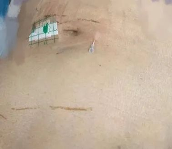病例一:患者钟某,男,40岁,肛周脓肿根治术后8小时出现急性尿潴留,耻骨上方可触摸到充盈性膀胱,患者胀痛难忍,辗转不安,予以热敷、心理暗示、听流水声诱导等措施均无法排尿,在双侧腹直肌平脐处予以浮针治疗,针刺运动予以扫散配合屈髋、缩肛、收腹、抬腿等再灌注活动,10分钟后患者成功排尿,胀痛立即缓解。