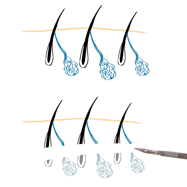微创的方法有很多种:刮除法、刮吸法、激光法等等,这些方法的共同点是,不在直视下破坏大汗腺,因此术中较难准确判断大汗腺的去除程度,手术效果较依赖于医生的经验和手感。