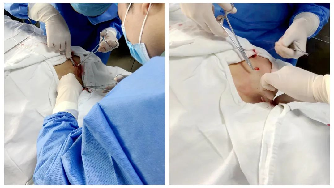 手术医生在局麻下进行输液港植入术