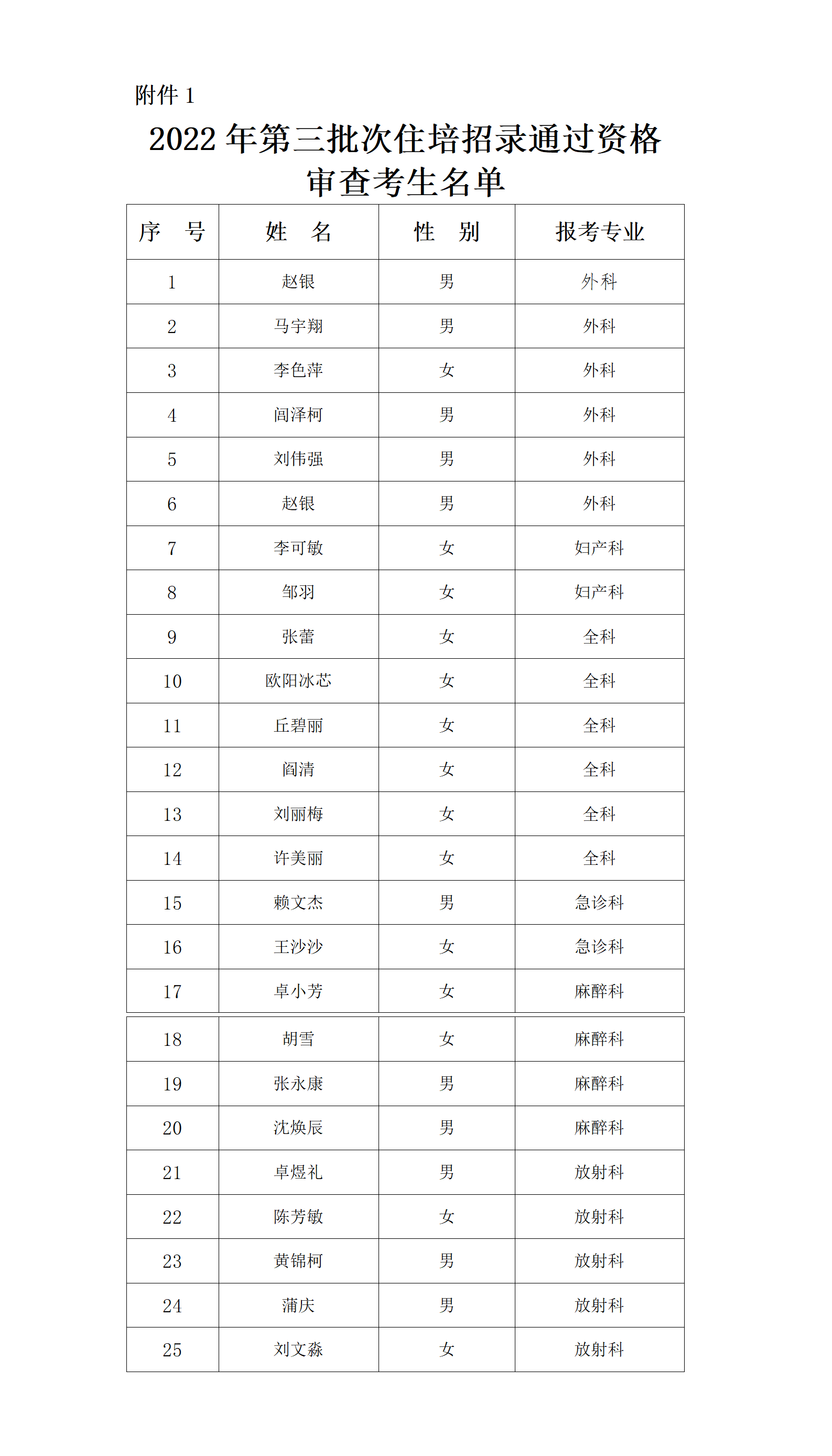 1. 2022年第三批次住培招录通过资格审查考生名单