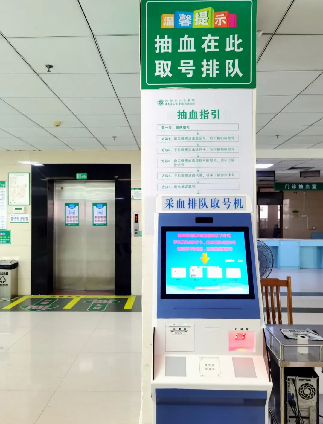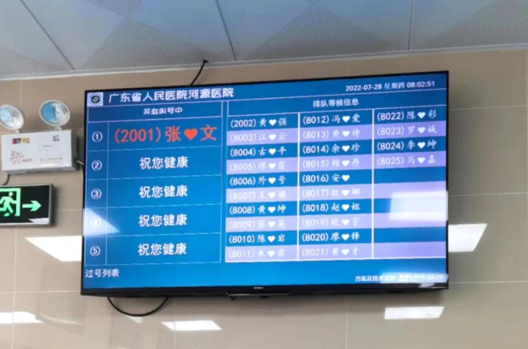 2.等待语音呼叫患者取号后,等待叫号,根据语音提示前往相应窗口进行抽血等项目检验。