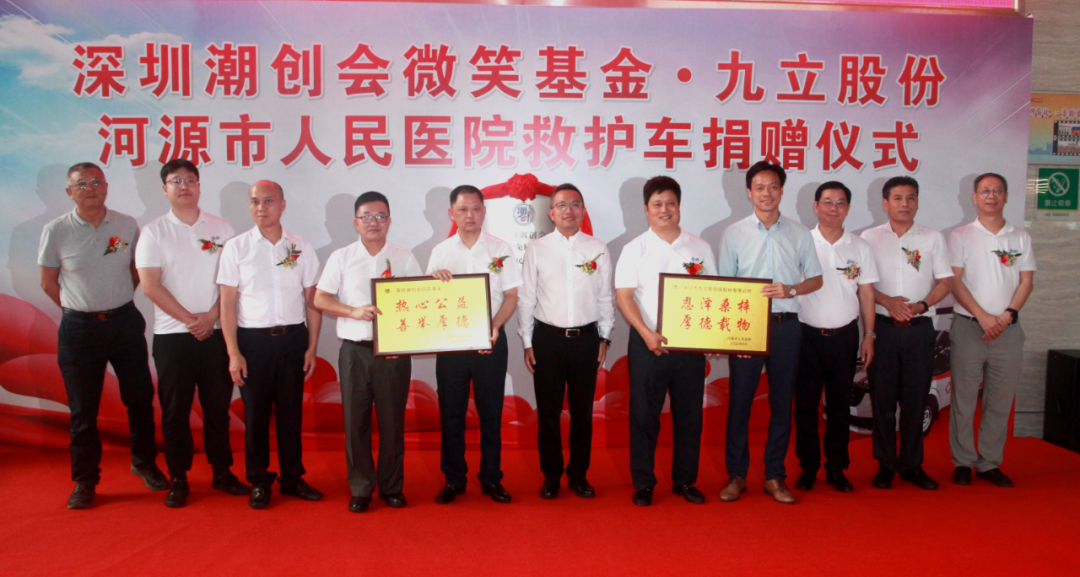 何鹏程院长、殷汉华书记向深圳九立股份有限公司和微笑慈善会赠送牌匾