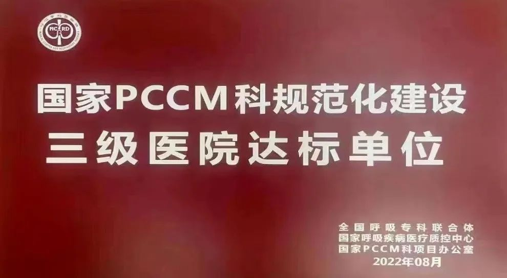 我院将以此次PCCM达标单位认证为契机持续推进PCCM规范化建设项目进一步提高我院呼吸诊疗救治水平引领区域内PCCM学科发展以精湛的医术和一流的服务为全市及周边区域患者提供更加优质的医疗服务!