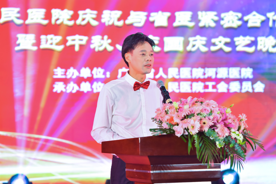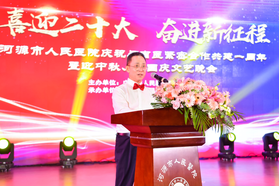 9月2日晚,以“喜迎二十大·奋进新征程”为主题的河源市人民医院庆祝与省医紧密合作共建一周年暨迎中秋、庆国庆文艺晚会在医院多功能会议室举行,院党委书记殷汉华、院长何鹏程及院党政领导班子其他成员,中层干部、各科室职工代表出席晚会。