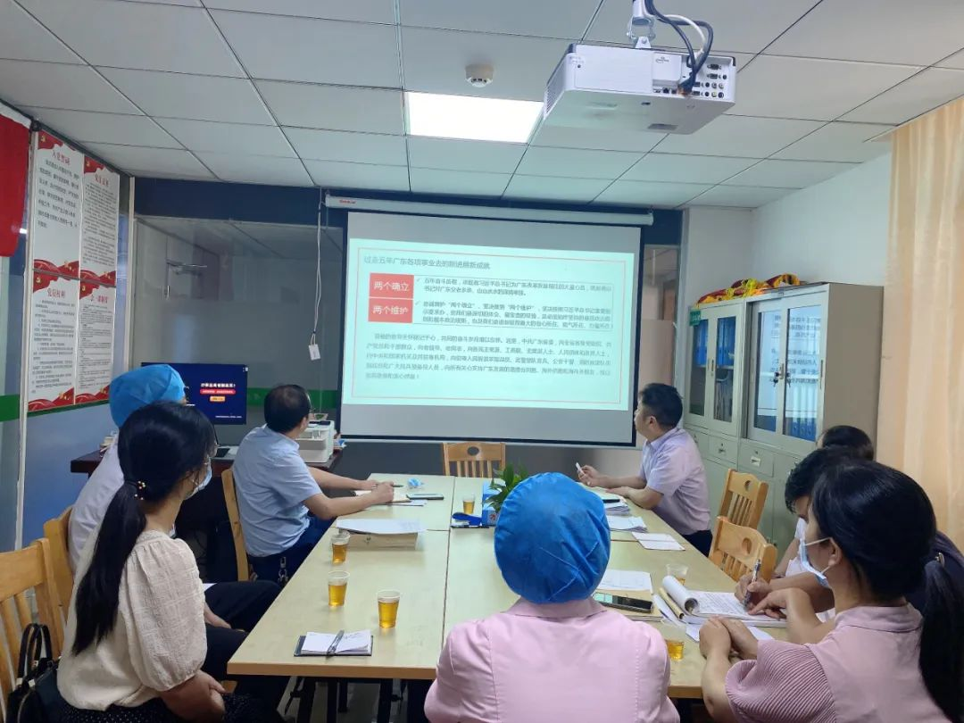 院党委书记殷汉华率先垂范,8月26日到挂点党支部讲专题党课。殷汉华围绕省第十三次党代会主题——深入学习贯彻习近平总书记对广东系列重要讲话和重要指示精神,忠诚拥护“两个确立”、坚决做到“两个维护”,奋力推动广东在全面建设社会主义现代化国家新征程中走在全国前列、创造新的辉煌,详细解读省党代会精神。他要求,支部党员要进一步扛牢责任,科学精准落实落细疫情防控、院感防控、医疗救治等各项工作措施;要锚定目标鼓足干劲,精准发力、全力以赴完成全年主要工作任务;要强化党建引领,加强干部队伍和人才建设,推动医院党建与业务融合发展上新台阶。
