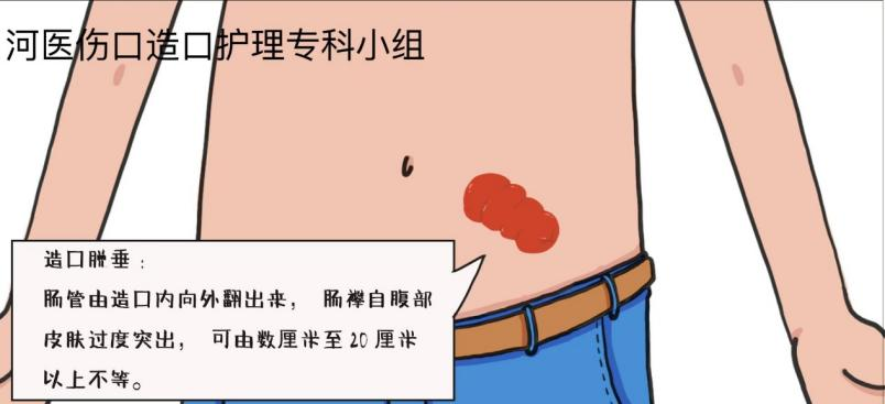 肠造口是外科医生用一段肠管在患者腹壁所做的人为开口,其功能是排泄粪便或尿液。排泄粪便的肠造口俗称“人工肛门”或“假肛”;排泄尿液的肠造口称为“泌尿造口”。理想的造口是位于腹直肌内,避开疤痕、皱褶、骨隆突或腰带等部位,排泄口高于皮肤1-2cm。