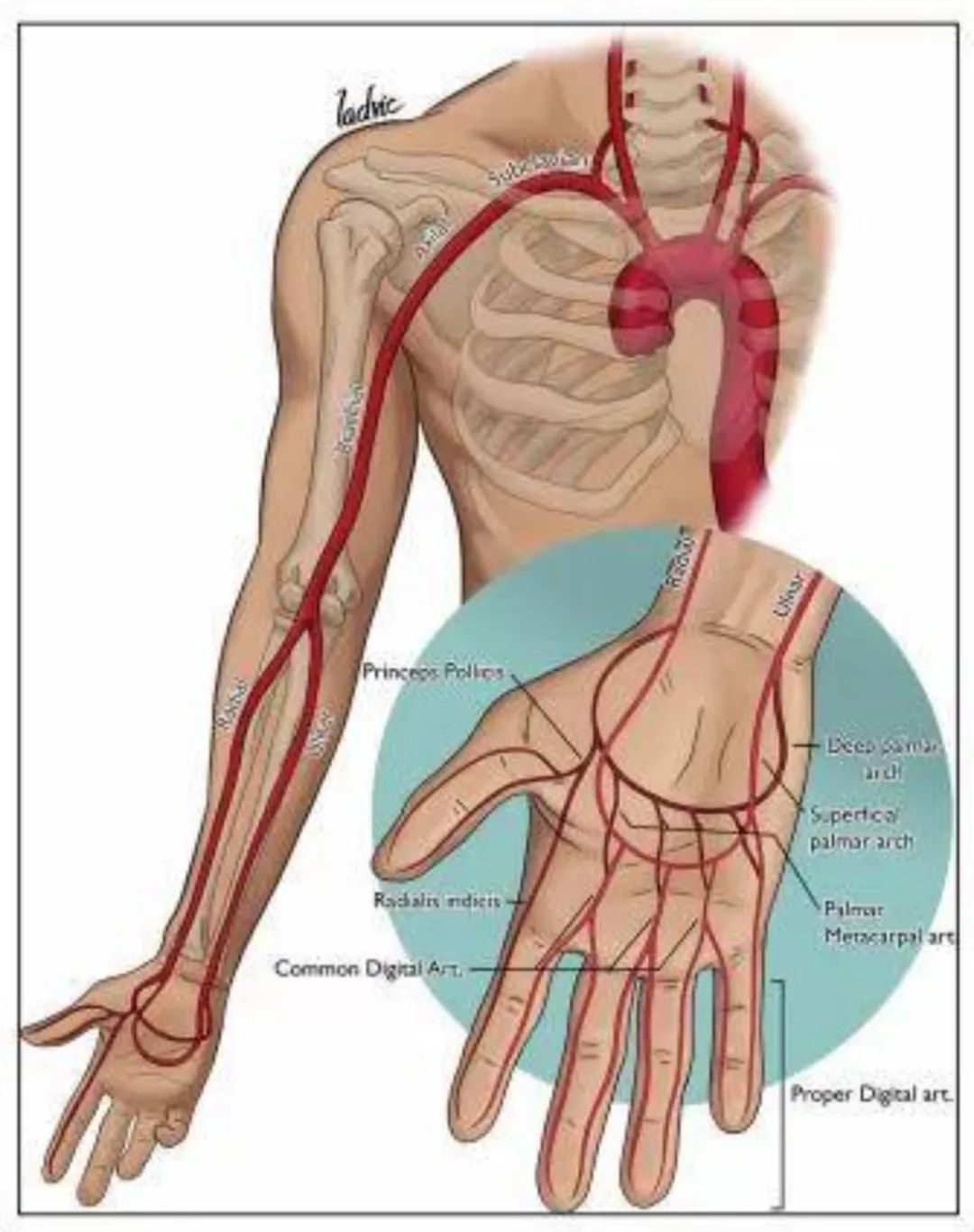 桡动脉入路血管走行示意图