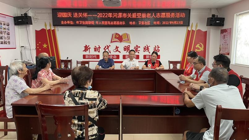 为弘扬中华民族尊老、敬老、爱老的优良传统,9月23日下午,院党委委员、副院长谢景来率办公室党支部党员志愿者前往卫星社区开展“迎国庆 送关怀”关爱空巢老人志愿服务活动。
