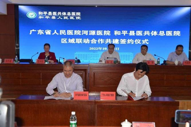 我院与和平县医共体总医院签署区域联动合作共建协议书,双方医院将以每周三作为合作共建日,首批共建学科有心血管内科、肿瘤科、骨科、泌尿外科及重症医学科等。