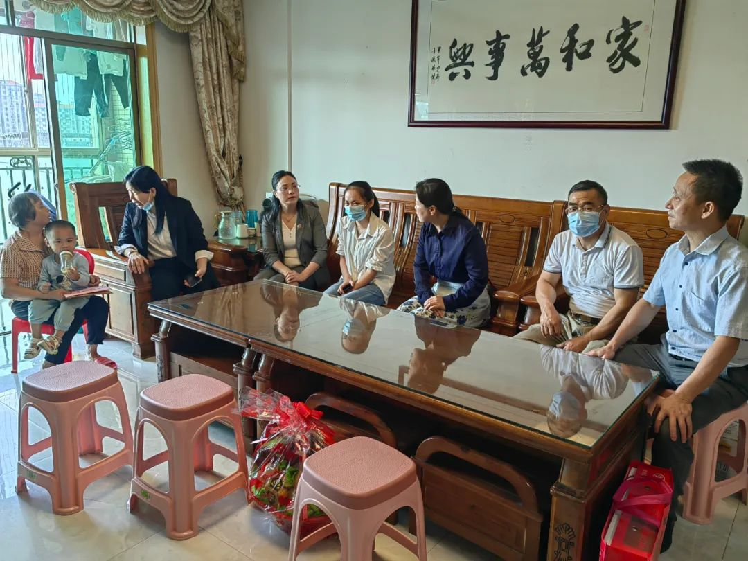 10月29日,市总工会常务副主席陈海青、副主席刘志灵、四级调研员吴波,市卫健局党组书记周鑫、四级调研员和工会主席卢育琼,我院副院长、工会主席谢景来一行来到我院感染科刁勤峰医生家中慰问其家属。