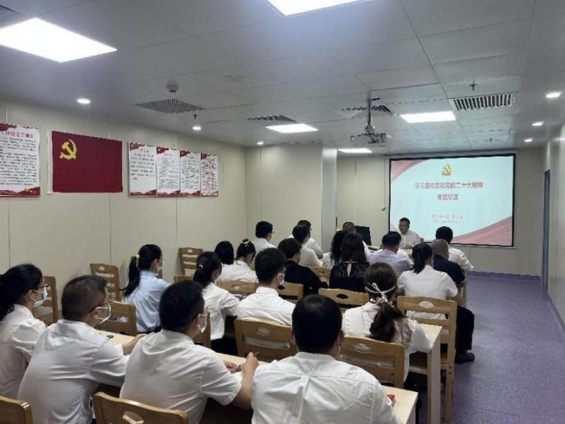 殷汉华强调,要把学习宣传贯彻党的二十大精神作为当前和今后一个时期首要的政治任务,与学习宣传贯彻习近平新时代中国特色社会主义思想结合起来,与医院高质量发展建设结合起来,紧盯医院高水平医院建设总目标不松懈;要深刻领悟党的二十大提出的新思想新论断、做出的新部署新要求,在全面学习、全面把握、全面落实上下功夫;要强化院感防控,进一步优化疫情防控措施,科学精准做好防控工作;党员干部要加强中国传统文化学习,以身边事教育身边人,踔厉推动文化自信自强;注重提升思想道德修养,加强职业道德教育,弘扬社会责任、家庭责任,奋力推动物质文明精神文明协调发展,以中国式现代化全面推进中华民族伟大复兴;各级党组织要多渠道多形式开展教育培训,引导广大党员干部自觉用大会精神武装头脑、指导实践、推动工作。