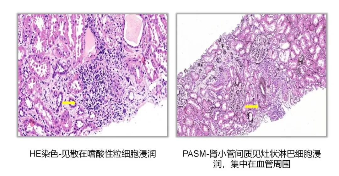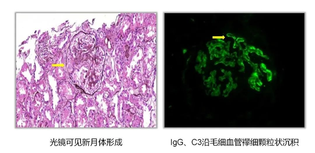 1.ANCA相关性血管炎肾损伤(III型新月体肾小球肾炎)合并II期膜性肾病: