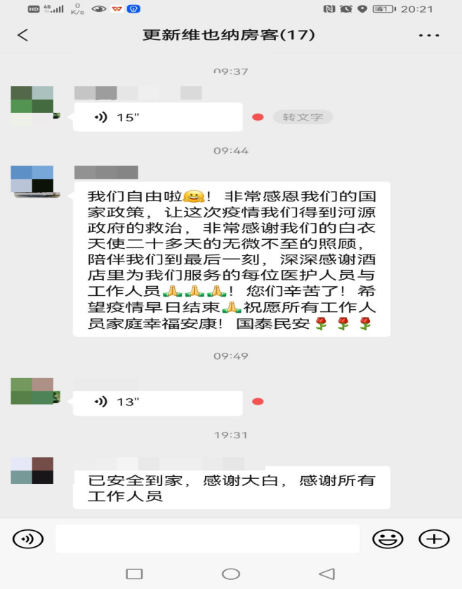 维也纳方舱医院患者出舱后的感谢与祝福