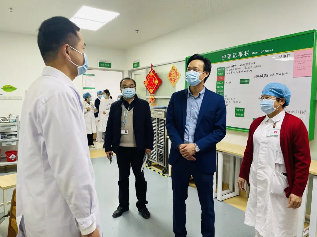 院领导先后走访慰问了中兴门诊、深河门诊、职能科室、内外科住院部、门急诊、发热门诊、肿瘤楼等临床医技科室。每到一处,院领导详细询问了解当前医疗救治工作情况,向大家表示感谢和敬意,要求合理安排春节期间值班值守,注重医疗质量安全。同时感谢一线干部职工、乡村振兴帮扶干部在过去一年中为人民、为医院的辛勤付出表示肯定,对疫情防控紧要关头做出的积极贡献致以崇高的敬意。