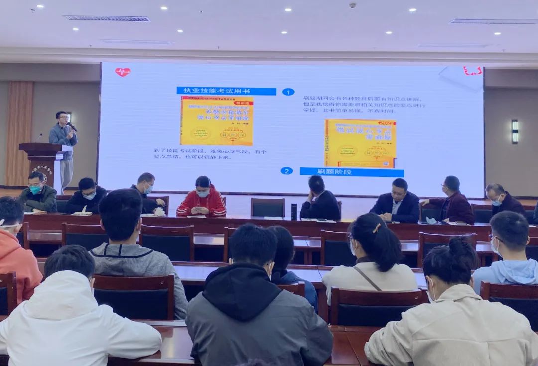 随后,2021级全科专业学员董育分享了自己执业医师考试的备考经验。他从考试时间安排、备考书籍策略、心态调整以及其他注意事项等几方面分享自己备考成功经验,给师弟师妹献计献策,助力2023年参加考试的师弟师妹。