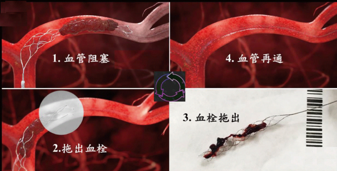 急诊取栓术之支架取栓示意图