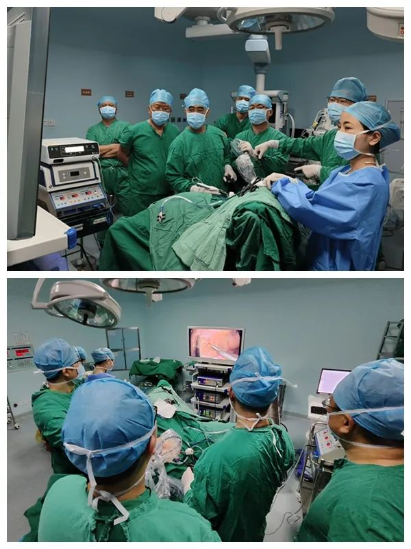 2月26日,姚学清教授再次到我院指导手术。患者为一位73岁的阿公,因“反复便血1周”来我院就医,肠镜检查发现肿瘤距离肛门很近,考虑为直肠下段恶性肿瘤,阿公和他家人起初考虑到年龄大,想前往广州治疗,后来听会诊医生说我院胃肠外科有聘请的客座教授,便咨询能否邀请教授一同参与手术,在与姚教授线上沟通讨论病例后便很快制定了手术方案及时间。术中,姚教授用精湛的技术与我院医护团队配合默契,成功完成腹腔镜肠癌手术,患者术后1周后康复出院。