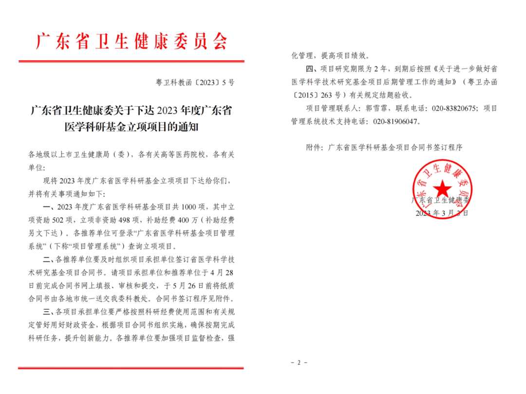 【科研喜报】我院喜获2023年度广东省医学科研基金16个科研项目立项!