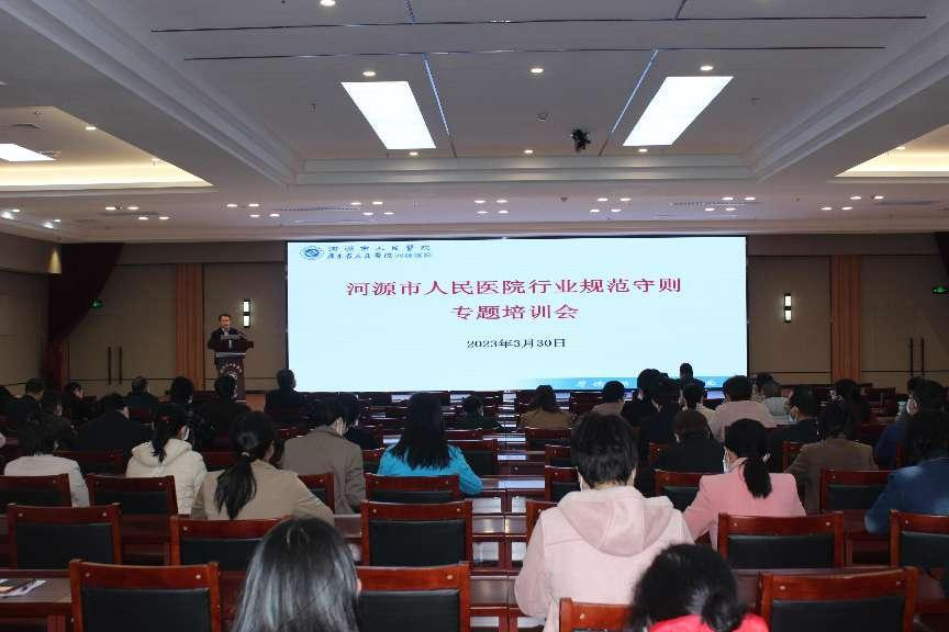 为进一步提升医务人员职业道德及职业修养、规范医师执业行为、保障医疗质量安全,3月30日下午,我院召开了“行业规范守则专题培训会议”,副院长何锦照出席会议,各临床医技科室负责人、护士长、质控员、医师及护士骨干约180参会,会议由医政首席专家陈亮主持。