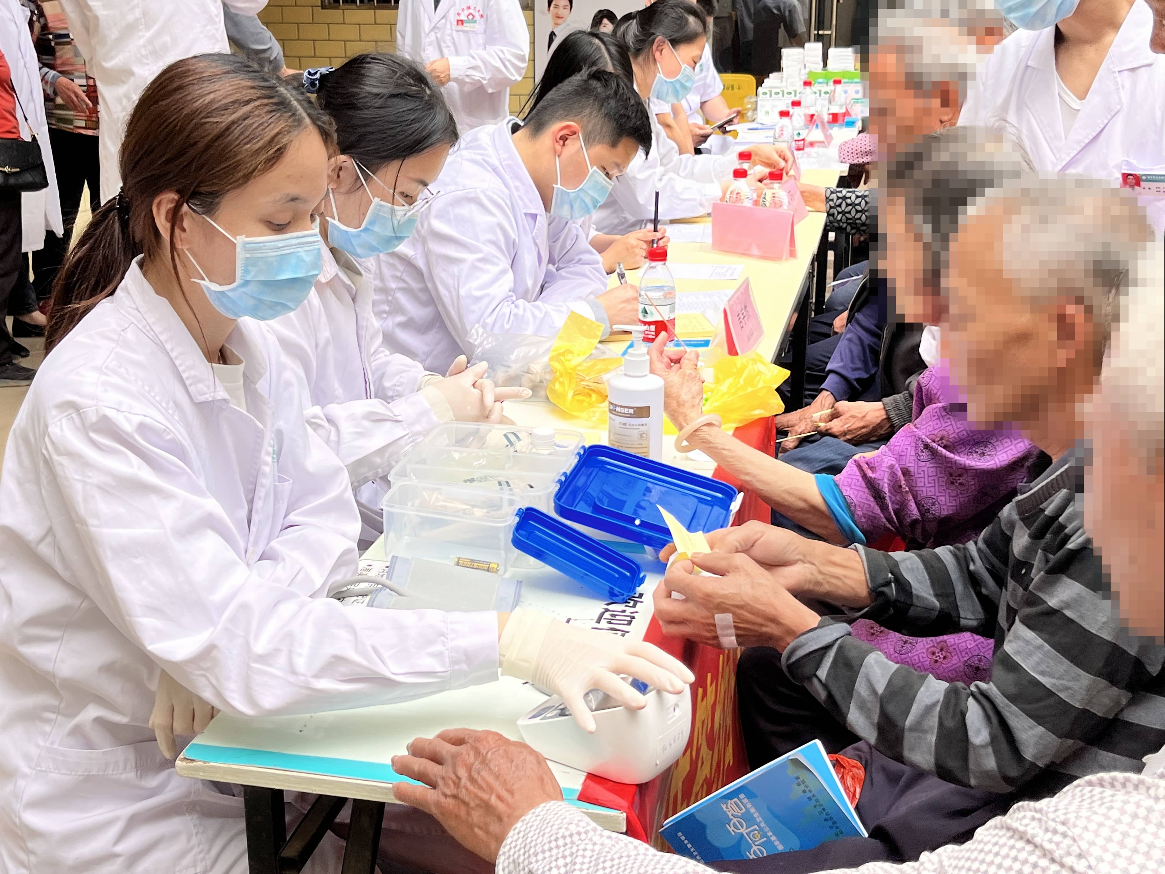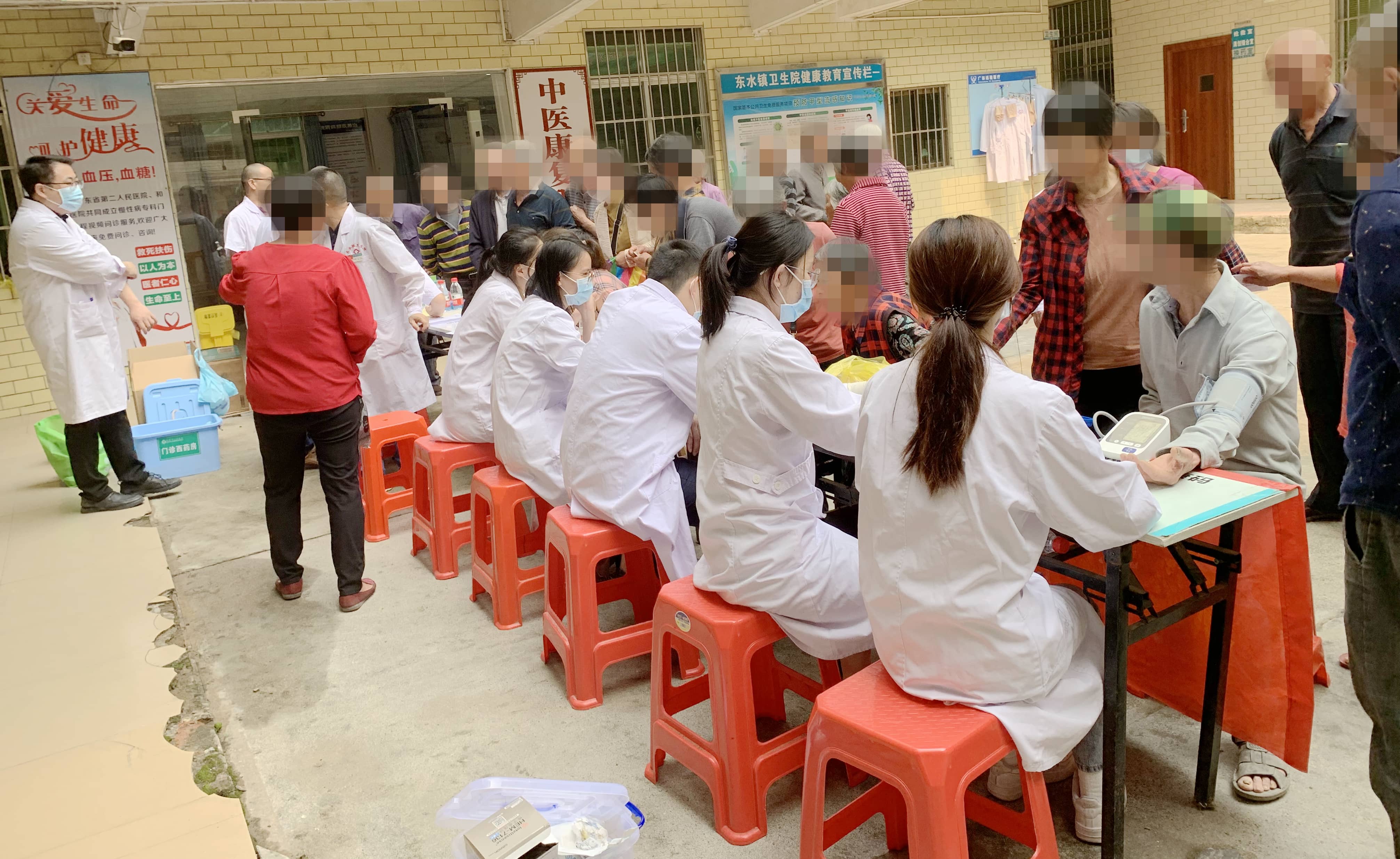 在义诊活动现场,心血管内科乐建华主任医师、骨三区刘丹主任、中医科黄颖医师、内分泌科魏巧副主任医师、消化内科硕士吉宇然医师为东水镇群众提供了专科专业指导和治疗方案,耐心地答疑解惑。我院重症医学科护理人员詹逸婷、黄依婷为现场群众提供免费量血压、测血糖。药学部党支部高志勇书记、叶林招主管药师、叶文剑主管药师为来现场的群众提供合理用药咨询和赠送药,活动现场前来咨询、就诊的群众源源不断。
