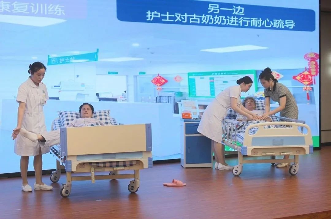 根据赛前抽签顺序,17个服务案例展示有序进行。每个案例均是护士们结合自己从事护理职业中的亲身体验及专科特点来编排的,以现场演绎结合PPT、视频、旁白说明的方式展示了护士形体礼仪、护患沟通、健康科普等内容,生动形象地把我们护理日常工作演绎在舞台上,同时也诠释了如何将人文关怀融入到临床护理工作中、把优质护理服务真正落到实处。随着台上一幕幕的转换,大家时而沉浸在温馨有爱的接待情景中,时而处于紧张的医患沟通情景中,时而又进入专业的科普宣教情景中……每到共鸣处总是响起雷鸣般掌声。所有的案例真实地展现了我院护理人员以患者为中心、以安全为目标、以服务为宗旨的工作理念。