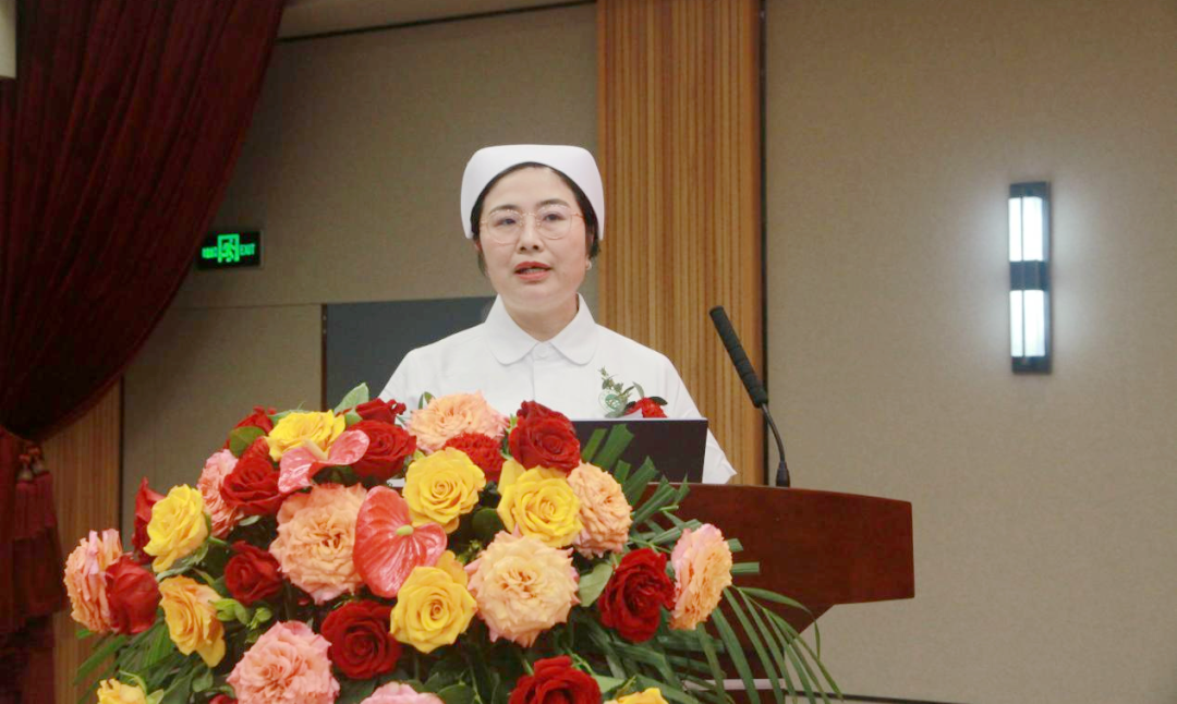 何鹏程院长代表院领导班子向全院护理人员送上节日祝福,他充分肯定了过去一年护理工作者的辛勤付出和工作成绩,感谢我院护理人员的无私奉献和勇于担当。他表示,通过对优秀青年护理骨干选拔充实护理管理队伍,不断为护理管理团队注入了新的活力,希望新上任的护理管理者以患者为中心,脚踏实地、精益求精,从护理流程、护理技术、护理服务等多方面,做实基础护理、做精专科护理、做强专科品牌,助推护理品质提升与学科发展,交出更加亮眼的成绩单。
